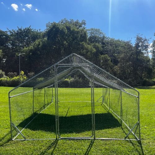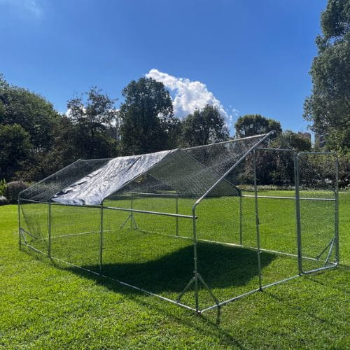 Защитная сетка с покрытием из ПВХ удерживает птицу внутри и препятствует проникновению хищников, что повышает безопасность выгула.