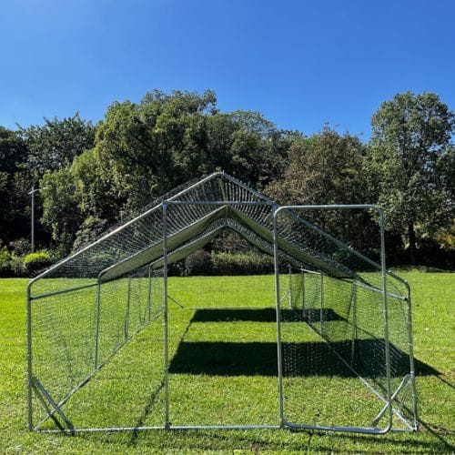 Защитная сетка с покрытием из ПВХ удерживает птицу внутри и препятствует проникновению хищников, что повышает безопасность выгула.